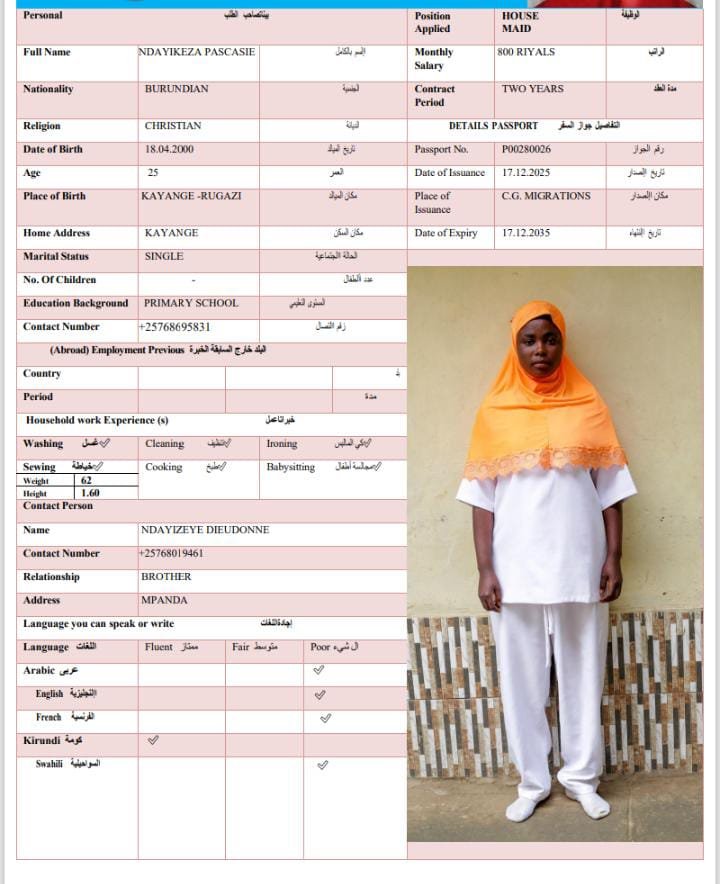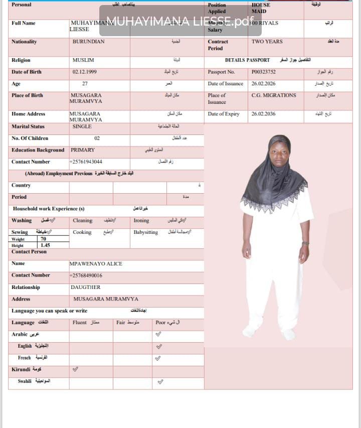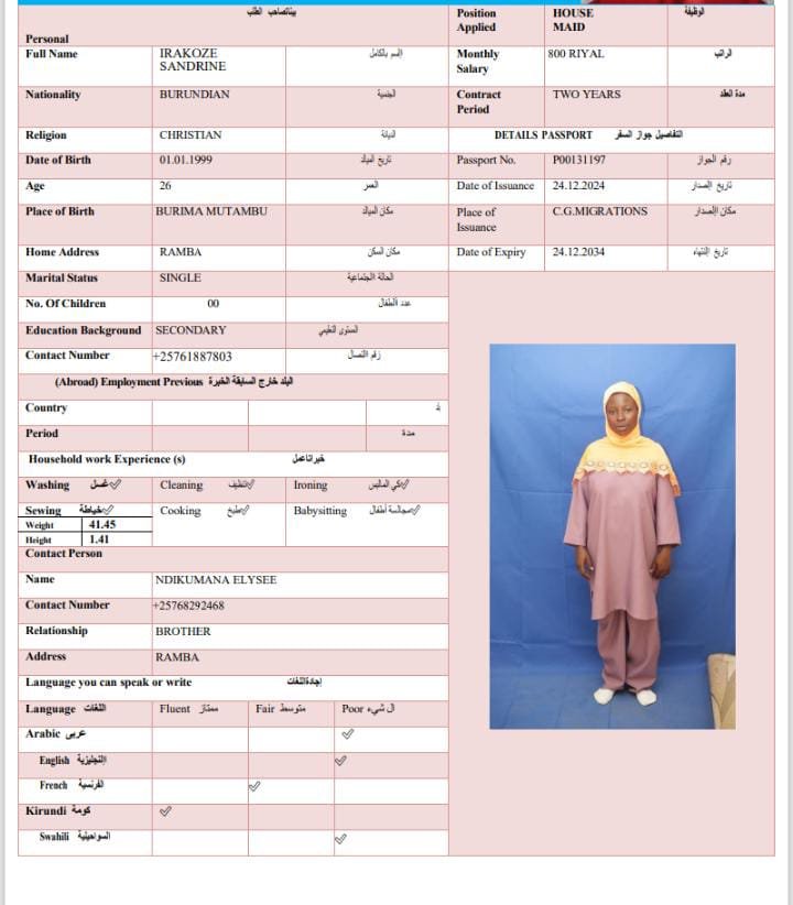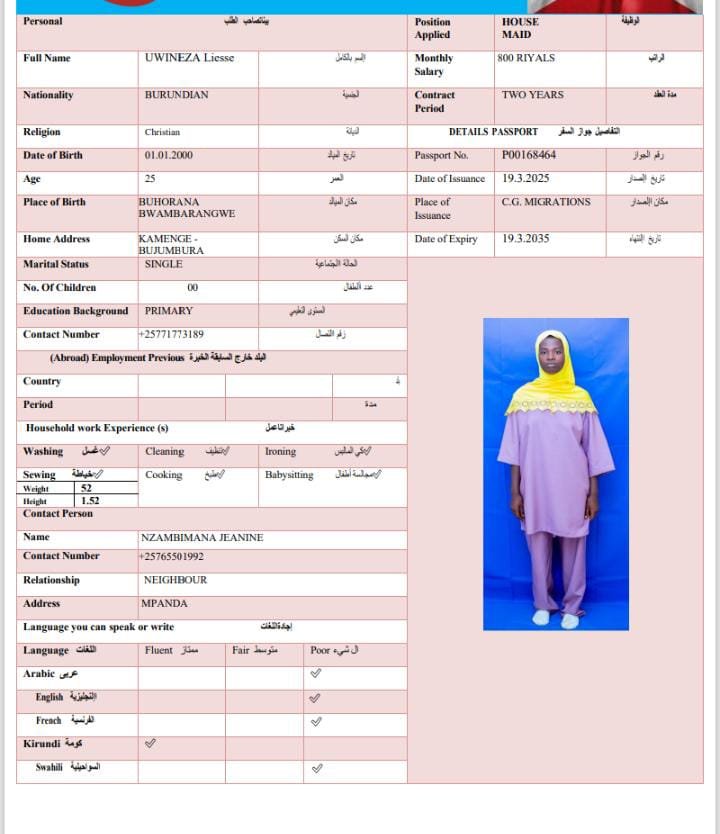بمناسبة فتح فرع الخفجي عرووض علي الاستقدام من بوروندي